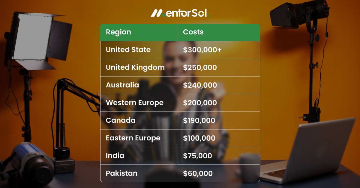 The location of your application development services company plays a significant role in costs due to varying living standards. Here’s how development costs compare in different regions for an app of average complexity: