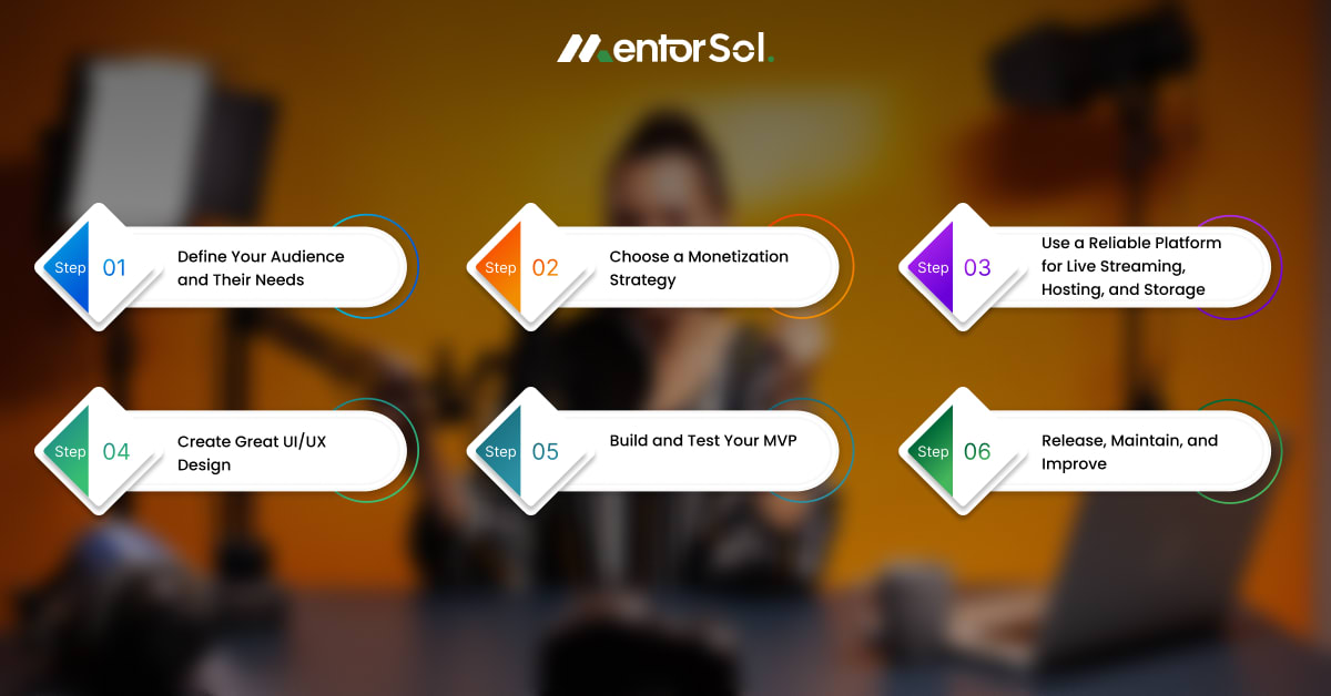 Building a live streaming app is a rewarding journey that involves understanding your audience, choosing effective monetization strategies, utilizing reliable platforms, prioritizing UI/UX design, testing with an MVP, and continuously improving post-launch. MentorSol is here to guide you through this innovative process.